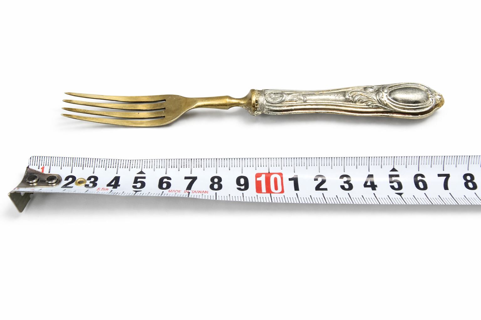 シルバーカラーの装飾ハンドルと、あたたかみのあるゴールドトーンのフォーク部分が、テーブルにさりげないヨーロッパの空気を運んでくれます。