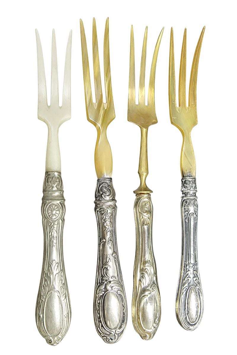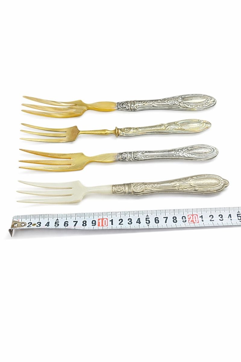 ・アンティーク品(シルバーカラー装飾ハンドル/樹脂または角風素材のフォーク部分)